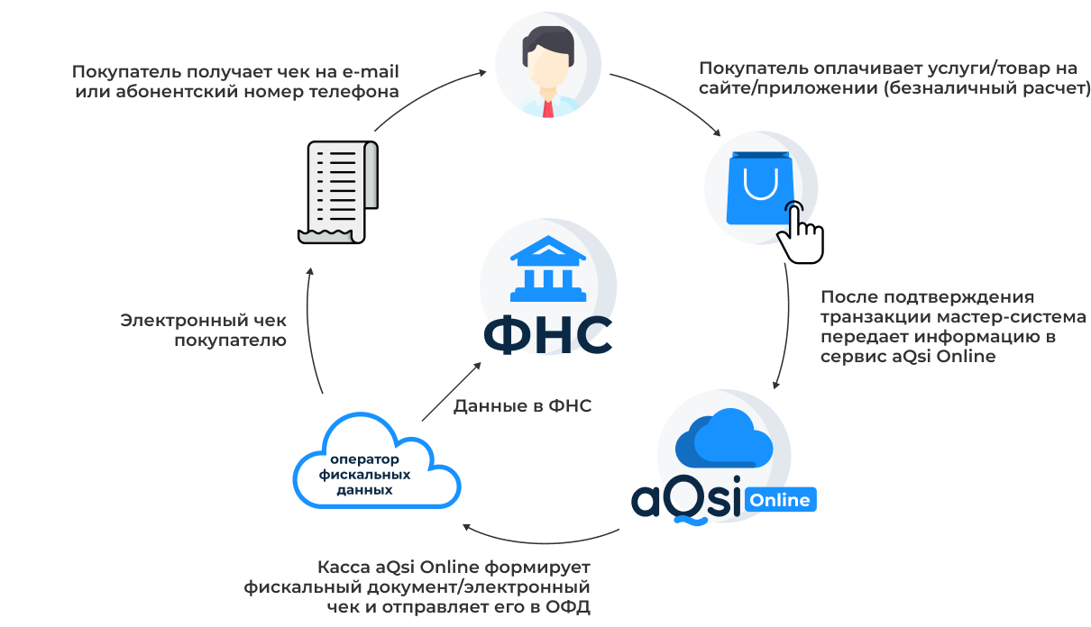 После подтверждения транзакции мастер-система передает информацию в сервис aQsi Online